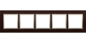 Ramka 5-krotna Nature-Drewno, ZŁOTE WENGE, IP20/IP44' ('IP44-zastosować uszczelki DUN4), SIMON54 NATURE o numerze katalogowym DRN5/85 w kategorii Ramki, Ramki, klawisze, plakietki. Produkt wyprodukowany przez markę KONTAKT-SIMON, seria SIMON 54 NATURE.