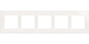 Ramka 5-krotna Nature-Szkło, BIAŁA PERŁA, IP20/IP44' ('IP44-zastosować uszczelki DUN4), SIMON54 NATURE o numerze katalogowym DRN5/70 w kategorii Ramki, Ramki, klawisze, plakietki. Produkt wyprodukowany przez markę KONTAKT-SIMON, seria SIMON 54 NATURE.