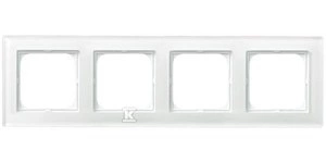 Ramka poczwórna białe szkło, białe szkło SONATA o numerze katalogowym R-4RG/31 w kategorii Ramki, Ramki, klawisze, plakietki. Produkt wyprodukowany przez markę OSPEL, seria SONATA.