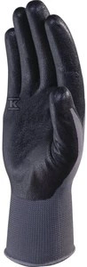 Rękawice dziane z poliestru (100%), dłoń powlekana Nitrylem, ścieg 13 czarno-szary 7 o numerze katalogowym VE722NO07 w kategorii Rękawice poliestrowe i poliamidowe, Ochrona rąk. Produkt wyprodukowany przez markę DELTA PLUS, seria VE722.