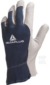 Rękawice ze skóry Licowej koziej, strona grzbietowa z drelichu bawełnianego naturalno-niebieski 11 o numerze katalogowym CT402BL11 w kategorii Rękawice skórzane, Ochrona rąk. Produkt wyprodukowany przez markę DELTA PLUS, seria CT402.
