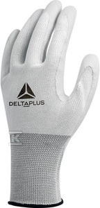 Rękawica dziana z poliamidu - strona chwytna z nitrylu biało-szary 11 o numerze katalogowym  VV712BC11 w kategorii Rękawice poliestrowe i poliamidowe, Ochrona rąk. Produkt wyprodukowany przez markę DELTA PLUS.