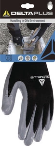 Rękawice do prac wymagających komfortu i wygody użytkowania w środowisku brudnym i wilgotnym szaro-czarny 9 o numerze katalogowym  DPVE712GR09 w kategorii Rękawice poliestrowe i poliamidowe, Ochrona rąk. Produkt wyprodukowany przez markę DELTA PLUS.