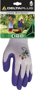 Rękawice dziecięce do prac ogrodniczych biało-fioletowy 4 o numerze katalogowym  DPVV733EVL04 w kategorii Rękawice poliestrowe i poliamidowe, Ochrona rąk. Produkt wyprodukowany przez markę DELTA PLUS.