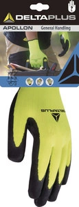 Rękawice do wszystkich prac wymagających dobrej wygody użytkowania ​żółty fluo-czarny 7 o numerze katalogowym  DPVV733JA07 w kategorii Rękawice poliestrowe i poliamidowe, Ochrona rąk. Produkt wyprodukowany przez markę DELTA PLUS.