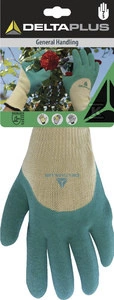 Rękawice do prac przy krzewach różanych z szorstkiego lateksu na wkładzie z bawełnianego dżerseju zielony 9 o numerze katalogowym  DPVV831VE09 w kategorii Rękawice poliestrowe i poliamidowe, Ochrona rąk. Produkt wyprodukowany przez markę DELTA PLUS.