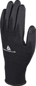 Rękawice dziane z poliestru, dłoń powlekana poliuretanem, ścieg 13 czarny 7 o numerze katalogowym  VE702PN07 w kategorii Rękawice poliestrowe i poliamidowe, Ochrona rąk. Produkt wyprodukowany przez markę DELTA PLUS.