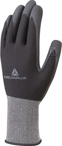 Rękawice dziane z poliestru spandex, dłoń powlekana pianką nitrylową czarny 9 o numerze katalogowym  VE723NO09 w kategorii Rękawice poliestrowe i poliamidowe, Ochrona rąk. Produkt wyprodukowany przez markę DELTA PLUS.