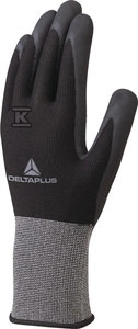 Rękawice dziane z poliestru spandex, dłoń nakrapiana kropkami nitrylowymi czarny 8 o numerze katalogowym  VE724NO08 w kategorii Rękawice poliestrowe i poliamidowe, Ochrona rąk. Produkt wyprodukowany przez markę DELTA PLUS.