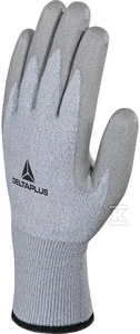 Rękawice dziane z włókna deltanocut i włókna węglowego, dłoń powlekana poliuretanem, ścieg 15 szary 10 o numerze katalogowym  VECUTB01GR10 w kategorii Rękawice poliestrowe i poliamidowe, Ochrona rąk. Produkt wyprodukowany przez markę DELTA PLUS.