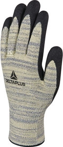 Rękawice dziane z włókna heatnocut, dłoń powlekana pianką nitrylową, ścieg 13 żółto-szaro-czarny 7 o numerze katalogowym  VECUTD01GJ07 w kategorii Rękawice poliestrowe i poliamidowe, Ochrona rąk. Produkt wyprodukowany przez markę DELTA PLUS.