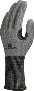 Rękawice dziane z włókna softnocut, dłoń powlekana poliuretanem, wzmocnienie kciuka/palca wskazującego szary 6 o numerze katalogowym  VECUTD09GR06 w kategorii Rękawice poliestrowe i poliamidowe, Ochrona rąk. Produkt wyprodukowany przez markę DELTA PLUS.