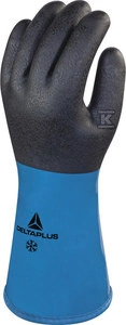 Rękawice na wkładzie z akrylu i poliamidu, całkowicie powlekane pvc i nitrylem, potrójna powłoka na stronie chwytnej, dł. 30 cm niebieski 10 o numerze katalogowym  VV837BL10 w kategorii Rękawice poliestrowe i poliamidowe, Ochrona rąk. Produkt wyprodukowany przez markę DELTA PLUS.