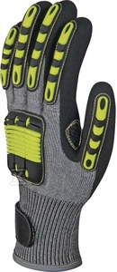 Rękawice z hdpe, antyprzecięciowe, dłoń powlekana gładkim nitrylem oraz pianką nitrylową, wzmocnienia z tpr, podszewka z akrylu żółto-szaro-czarny 8 o numerze katalogowym  VV913JA08 w kategorii Rękawice poliestrowe i poliamidowe, Ochrona rąk. Produkt wyprodukowany przez markę DELTA PLUS.