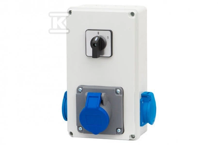 Rozdzielnica BICO - gniazda 16A 3p, 2x230V, 0/1 (16A) o numerze katalogowym F3.0799 w kategorii Osprzęt przemysłowy-siłowy>Zestawy zasilające. Produkt wyprodukowany przez markę F-ELEKTRO.