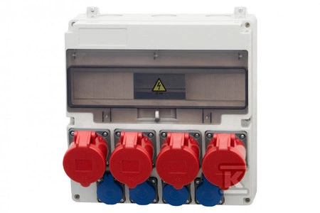 Rozdzielnica LAGO 17M - gniazda proste 4x32A 5p, 4x230V o numerze katalogowym F3.0760 w kategorii Osprzęt przemysłowy-siłowy>Zestawy zasilające. Produkt wyprodukowany przez markę F-ELEKTRO.