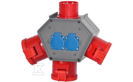 Rozdzielnica POLYBOX - wtyk odbornikowy 32A 5p, gniazda 2x16A 5p, 32A 5p, 2x230V o numerze katalogowym F3.0621 w kategorii Osprzęt przemysłowy-siłowy>Zestawy zasilające. Produkt wyprodukowany przez markę F-ELEKTRO.