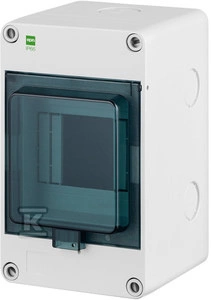 Rozdzielnica natynkowa HERMETICA 1x4 moduły zacisk N drzwi przydymiane IP65 o numerze katalogowym 2202-01 w kategorii Tworzywowe natynkowe, Rozdzielnice i obudowy. Produkt wyprodukowany przez markę ELEKTRO-PLAST NASIELSK, seria HERMETICA.