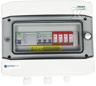Rozdzielnica hermetyczna EMITER z ogranicznikiem przepięć AC typ 2, B20A 3F, różnic 40A/300mA o numerze katalogowym EM-285_AC w kategorii Obudowy, Zabezpieczenie instalacji. Produkt wyprodukowany przez markę EMITER, seria ZABEZPIECZENIE INSTALACJI.
