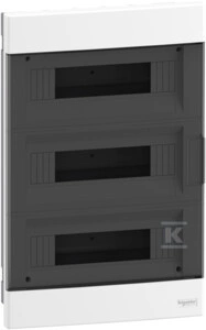Obudowa podtynkowa, Easy9 EU IP40 EZ9EU-3-12-PT-T transparentna 3 rzędy 12 modułów/rząd o numerze katalogowym EZ9EUA312 w kategorii Rozdzielnice i obudowy>Tworzywowe podtynkowe. Produkt wyprodukowany przez markę SCHNEIDER ELECTRIC, seria OBUDOWY EASY9 EU.