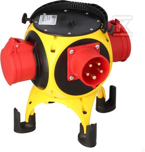 Rozdzielnica przenośna z tworzywa typ "Pegasus" IP44 6M wejście wtyczką tab. 32/5 wyjście 3x32/5 bez zabezpieczeń IP44 o numerze katalogowym 9034008Y w kategorii Zestawy zasilające, Osprzęt przemysłowy-siłowy. Produkt wyprodukowany przez markę PCE, seria PEGASUS.