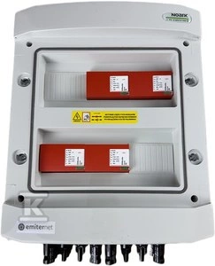 Rozdzielnica DC hermetyczna IP65 EMITER z ogranicznikiem przepięć DC Dehn 1000V typu 1+2, 4x MPPT o numerze katalogowym EM-630_DC w kategorii Zabezpieczenie instalacji>Obudowy. Produkt wyprodukowany przez markę EMITER.