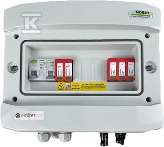 Rozdzielnica DCAC hermetyczna IP65 EMITER z ogranicznikiem przepięć DC Dehn 1000V typu 2, 1 x MPPT / ogr. AC Dehn typ 2, 20A 1-F o numerze katalogowym EM-202_DCAC w kategorii Zabezpieczenie instalacji>Obudowy. Produkt wyprodukowany przez markę EMITER.