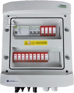 Rozdzielnica DCAC hermetyczna IP65 EMITER z ogranicznikiem przepięć DC Dehn 1000V typu 2, 2 x MPPT / ogr. AC Dehn typ 2, 50A 3-F o numerze katalogowym EM-1290_DCAC w kategorii Zabezpieczenie instalacji>Obudowy. Produkt wyprodukowany przez markę EMITER.