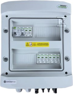 Rozdzielnica DCAC hermetyczna IP65 EMITER z ogranicznikiem przepięć DC Noark 1000V typu 2, 2 x MPPT / ogr. AC Noark typ 2, 16A 1-F o numerze katalogowym EM-669N_DCAC w kategorii Zabezpieczenie instalacji>Obudowy. Produkt wyprodukowany przez markę EMITER.