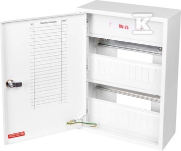 Rozdzielnica natynkowa RN-24 z zamkiem, miejsce na 24 zabezpieczeń typu s. IP 30 o numerze katalogowym  RN-24 Z w kategorii Metalowe natynkowe, Rozdzielnice i obudowy. Produkt wyprodukowany przez markę KARWASZ, seria RN.