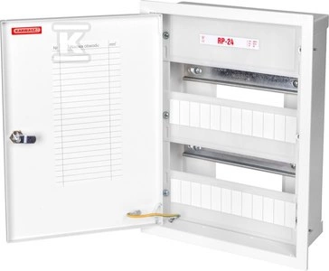 Rozdzielnica podtynkowa RP-24 z zamkiem, miejsce na 24 zabezpieczeń typu s. IP 30 o numerze katalogowym RP-24 Z w kategorii Metalowe podtynkowe, Rozdzielnice i obudowy. Produkt wyprodukowany przez markę KARWASZ, seria RP.