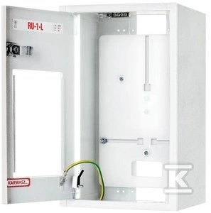 Rozdzielnica uniwersalna RU-1-L z zamkiem i okienkiem, miejsce na 1 licznik 1F o numerze katalogowym RU-1-L Z/O w kategorii Metalowe uniwersalne, Rozdzielnice i obudowy. Produkt wyprodukowany przez markę KARWASZ, seria RU.