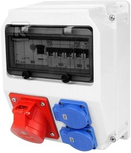 Rozdzielnica stacjonarna typ LUBLIN wejście M32 wyjście 32/5xB32 3P 2xGSx2B16 1P IP54 o numerze katalogowym 9035311W w kategorii Zestawy zasilające, Osprzęt przemysłowy-siłowy. Produkt wyprodukowany przez markę PCE, seria LUBLIN.