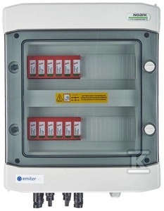 Rozdzielnica przyłączeniowa DC hermetyczna IP65 EMITER z ogranicznikiem przepięć DC Dehn 1000V typu 2, 4x łańcuch PV, 4x MPPT o numerze katalogowym EM-103_DC w kategorii Zabezpieczenie instalacji>Obudowy. Produkt wyprodukowany przez markę EMITER.