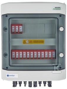 Rozdzielnica przyłączeniowa DC hermetyczna IP65 EMITER z ogranicznikiem przepięć DC Dehn 1000V typu 2, 5x łańcuch PV, 5x MPPT o numerze katalogowym EM-206_DC w kategorii Zabezpieczenie instalacji>Obudowy. Produkt wyprodukowany przez markę EMITER.