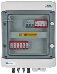 Rozdzielnica przyłączeniowa DCAC hermetyczna IP65 EMITER z ogranicznikiem przepięć DC Dehn 1000V typu 2, 2 x łańcuch PV, 2 x MPPT // ogr. AC Dehn typ 1+2, 10A 3-F o numerze katalogowym EM-841_DCAC w kategorii Zabezpieczenie instalacji>Obudowy. Produkt wyprodukowany przez markę EMITER.