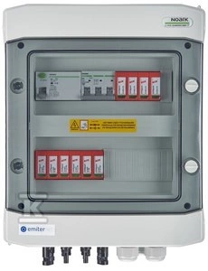 Rozdzielnica przyłączeniowa DCAC hermetyczna IP65 EMITER z ogranicznikiem przepięć DC Dehn 1000V typu 2, 2 x łańcuch PV, 2 x MPPT // ogr. AC Dehn typ 2, 16A 3-F, RCD typ A 40A/300mA o numerze katalogowym EM-528_DCAC w kategorii Zabezpieczenie instalacji>Obudowy. Produkt wyprodukowany przez markę EMITER.