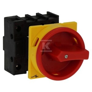 Rozłącznik główny, 3 biegowy+N, 40 A, montaż natablicowy, pokrętło czerwono-żółte z blokadą na kłódkę P1-40/EA/SVB/N o numerze katalogowym 199896 w kategorii Wyłączniki, rozłączniki>Wyłączniki i rozłączniki obrotowe. Produkt wyprodukowany przez markę EATON.
