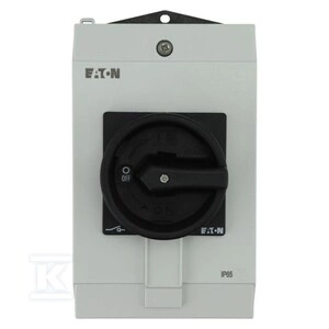 Rozłącznik ZAŁ-WYŁ, 3 biegowy+1NO+1NC, 40A, w obudowie IP65, pokrętło czarne z blokadą na kłódkę P1-40/I2/SVB-SW/HI11 o numerze katalogowym 199913 w kategorii Wyłączniki, rozłączniki>Wyłączniki i rozłączniki obrotowe. Produkt wyprodukowany przez markę EATON.