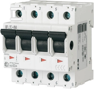 Rozłącznik główny (izolacyjny), 63A, 4-biegunowy HIS-63/4  o numerze katalogowym  142823  w kategorii Wyłączniki i rozłączniki modułowe, Wyłączniki, rozłączniki. Produkt wyprodukowany przez markę EATON, seria ŁĄCZNIK MODUŁOWY.