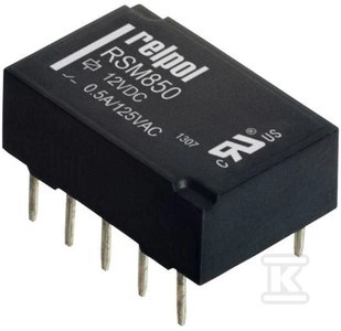 Przekaźnik subminiaturowy RSM850-6112-85-1024 monostabilny, 2 zestyki przełączne, 2 A, do obwodów drukowanych.wejście / cewka: 1-10, napięcie zasilania Un - 24 V DC o numerze katalogowym 2611709 w kategorii Przekaźniki miniaturowe, Przekaźniki elektromagnetyczne. Produkt wyprodukowany przez markę RELPOL, seria RSM850.