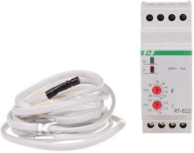 Regulator temperatury RT-822 z sondą w kmpl. zakres regulacji temp.: 30÷60°C, styki: 1P , I=16A, 2 moduły o numerze katalogowym RT-822 w kategorii Regulatory, Aparatura sterująca. Produkt wyprodukowany przez markę F&F.