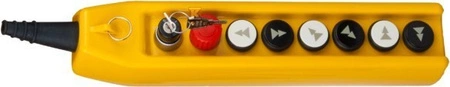 Kaseta Suwnicowa z przyciskiem pokrętnym kluczykiem (1NO), z przyciskiem bezpieczeństwa (1NC), przyciski dwustopniowe: wciągnik góra (2NO) - wciągnik dół (2NO), suwnica w przód (2NO) - suwnica w tył (2NO), lewo (2NO) - prawo (2NO) o numerze katalogowym PKS-8\W03 w kategorii Przyciski i przełączniki sterownicze - akcesoria, Przyciski i przełączniki sterownicze. Produkt wyprodukowany przez markę SPAMEL, seria PKS.