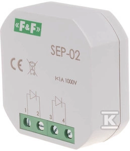 Separator sygnału wejściowego, 1A 1000V, montaż w puszce podtynkowej O60 SEP-02 o numerze katalogowym SEP-02 w kategorii Przekaźniki - pozostałe, Przekaźniki. Produkt wyprodukowany przez markę F&F.