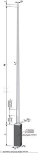 Słup oświetleniowy NT S-60PC-3, prosty, stożkowy 6m/3mm, Fundament F100/200 Rzeszów, Element montażowy do fundamentów F75-F150 bez zawiasów, Wysięgnik NT ST 1 ram. 1, 0 m, 15st, fi 60 o numerze katalogowym DLR981 w kategorii Słupy stalowe>Słupy okrągłe stożkowe. Produkt wyprodukowany przez markę ELEKTROMONTAŻ, seria NT.
