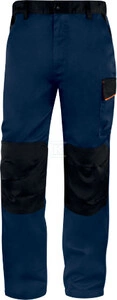 Spodnie MACH 1 z poliestru (65%) i bawełny (35%), 235 g/m2 Granatowo-pomarańczowy m o numerze katalogowym  M1PA2BMTM w kategorii Odzież robocza>Bluzy, kurtki i spodnie robocze. Produkt wyprodukowany przez markę DELTA PLUS, seria OCHRONA CIAŁA.