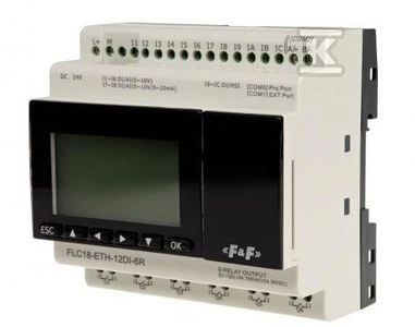 Sterownik programowalny FLC18-ETH-12DI-6R 12 wejść i 6 wyjść przekaźnikowych: o numerze katalogowym FLC18-ETH-12DI-6R w kategorii Przekaźniki programowalne, Sterowniki programowalne. Produkt wyprodukowany przez markę F&F.