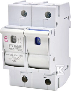 Rozłącznik izolacyjny STV D02 63A 1p+N o numerze katalogowym 002271002 w kategorii Akcesoria bezpiecznikowe, Rozłączniki, podstawy bezpiecznikowe. Produkt wyprodukowany przez markę ETI, seria D0.
