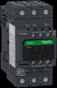 Stycznik mocy TeSys D 50A 3P 1NO 1NC cewka 24VDC zaciski EVK skrzynkowe o numerze katalogowym LC1D50ABD w kategorii Styczniki typ AC, Styczniki. Produkt wyprodukowany przez markę SCHNEIDER ELECTRIC.