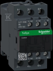 Stycznik mocy TeSys D AC3 38A 3P 1NO 1NC cewka 24VDC niski pobór o numerze katalogowym LC1D38BL w kategorii Styczniki typ DC, Styczniki. Produkt wyprodukowany przez markę SCHNEIDER ELECTRIC, seria MAŁA AUTOMATYKA.
